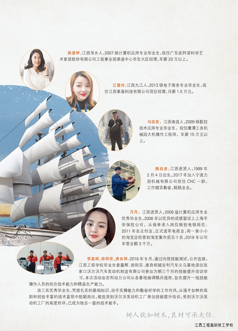 學校積極探索“工學結合、校企合作、訂單培養”的辦學機制及人才培養模式,堅持“以服務為宗旨,以就業為導向”的辦學方針,依托行業,面向社會、面向市場的辦學思路。與華為、美的等幾十家省內外大中型中外知名企業建立了長期的合作關系,完善了畢業生就業網絡。探索出“訂單式培養”“人才就業培訓基地”等校企合作的辦學模式,真正做到辦學和市場對接,教育與崗位工作過程零接軌,實現校企雙方資源共享、優勢互補、良好互動和共同發展。為確保學生就業與升學兩不誤,學校與江西應用技術職業學院、江西工業貿易職業技術學院、江西機電職業技術學院、江西青年學院等省內多家優質高等院校建立了中高對接、單招、統招等形式的校校合作,為學生升學提供全方位的服務。不斷深化教育教學改革,努力改善辦學條件,教學質量和辦學水平不斷提高,為江西經濟社會發展和全國地勘行業培養了一大批合格的技能型人才,取得了良好的社會效益。