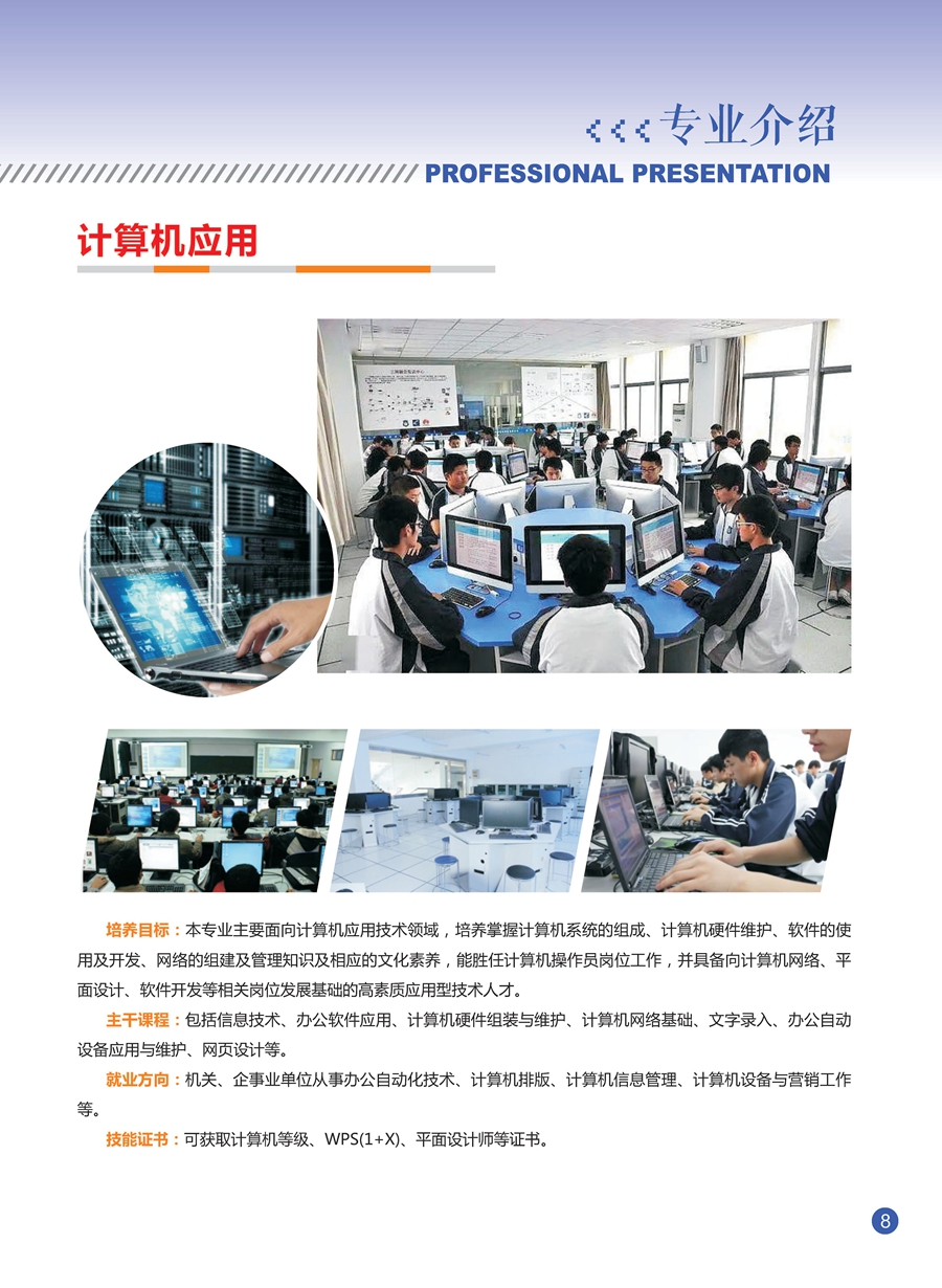 一流的專業設置 學校以“立足民政、突出特色、依托行業、服務社會”為目標.開設了養老護理、客服、電子、數控、模具、會計、計算機、學前教育等多個社會亟需的特色專業。