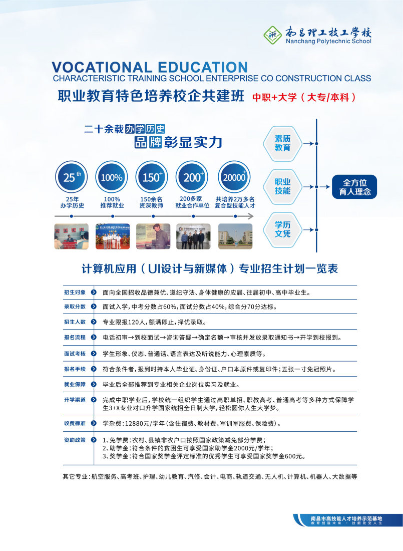 南昌理工技工學校2023年計算機應用(UI設計與新媒體)特色專業招生簡章