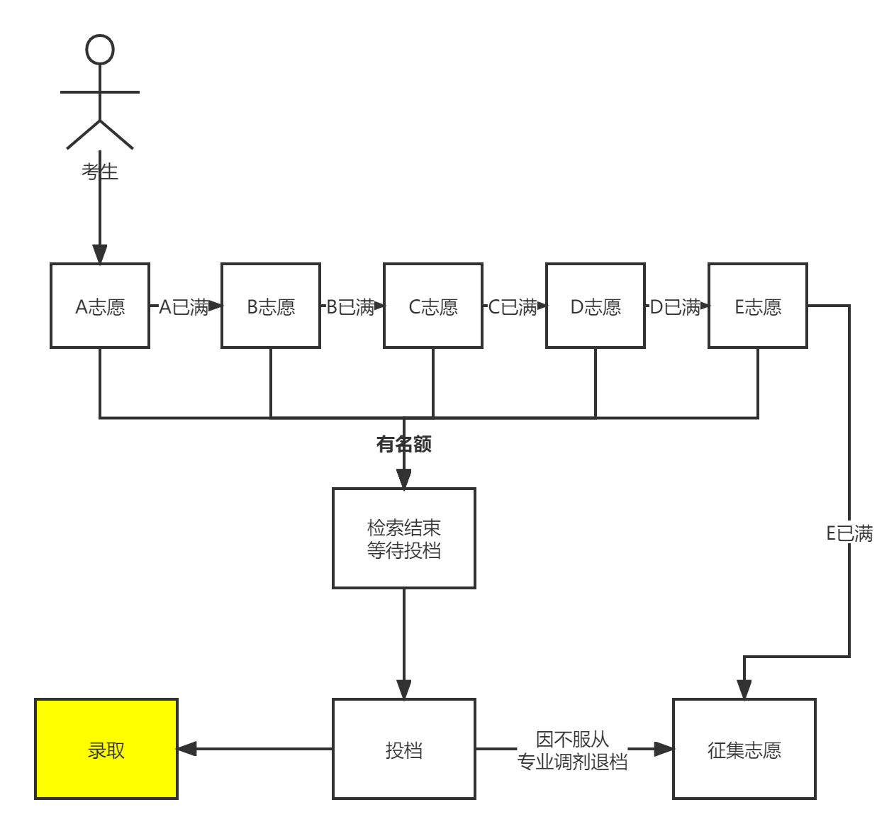 根據(jù)平行投檔的“一輪投檔”規(guī)則,如因不服從調(diào)劑等原因被院校退檔,考生將不再執(zhí)行后續(xù)的志愿投檔,考生只能等待征集志愿,建議考生謹(jǐn)慎選擇是否服從專(zhuān)業(yè)調(diào)劑。