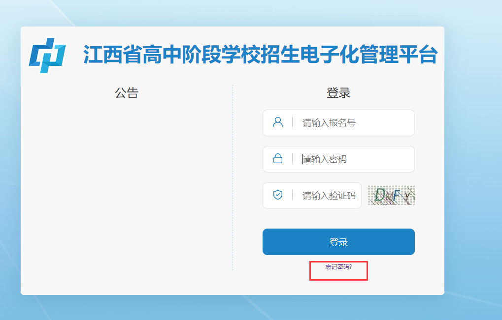 考生如不慎忘記密碼,可登錄“江西省高中階段學(xué)校招生電子化管理平臺(tái)”進(jìn)行密碼找回。