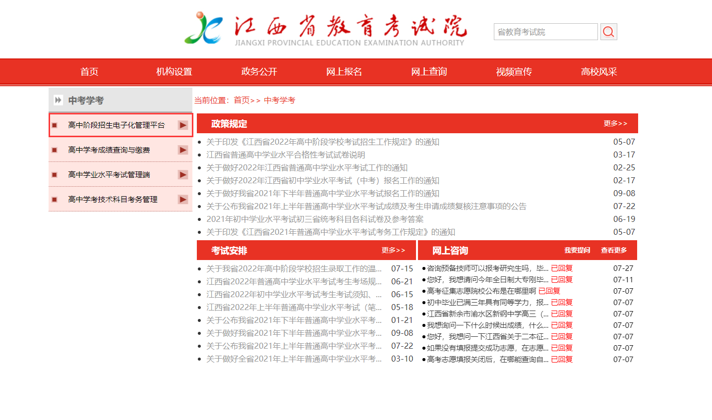 2. 點(diǎn)擊“高中階段招生電子化管理平臺(tái)”按鈕,進(jìn)入“江西省高中階段學(xué)校招生電子化管理平臺(tái)”首頁(yè)。